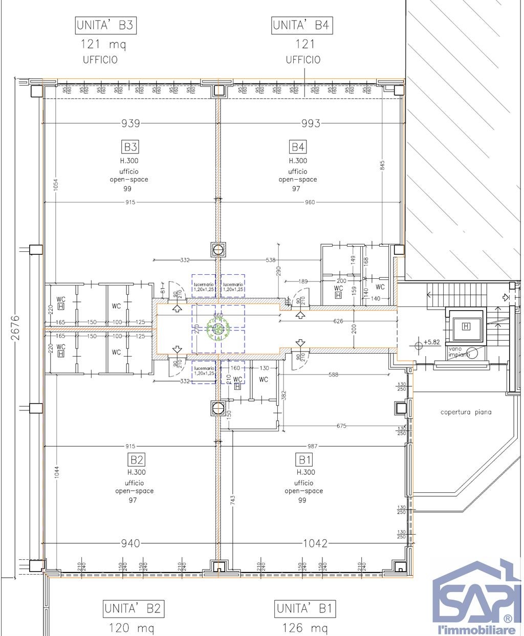 Le unità sono attualmente classificate come laboratorio (C3), ma è prevista la possibilità di trasformarle in spazi ad uso commerciale per una superficie massima di 150 mq, con un sovraprezzo da definire.